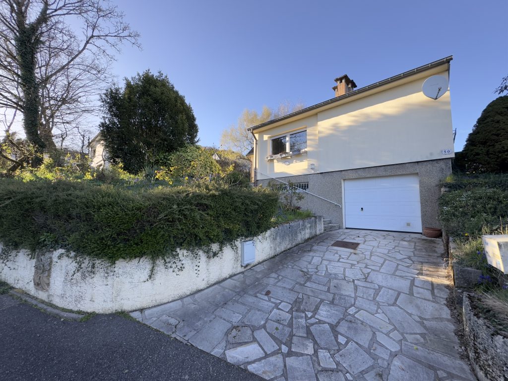 Maison individuelle avec sous-sol complet et terrain de 18 ares, située dans un environnement paisible.